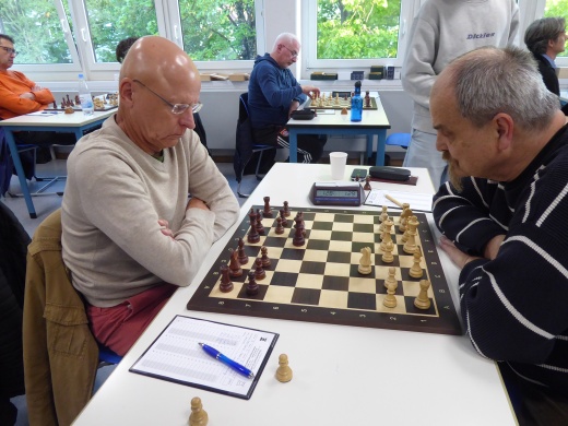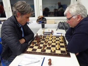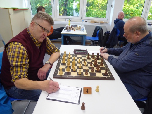 Hans hatte den stärksten Gegner und wurde mit den schwarzen Steinen nach zunächst ausgeglichener Eröffnung ebenfalls überspielt. Ulrich erreichte mit den schwarzen Steinen nach einer harmlosen Eröffnung des Gegners eine minimal bessere Stellung mit Druck auf den gegnerischen isolierten Damenbauer. Ein verabsäumter Turmtausch erleichterte jedoch das Gegenspiel und die Partie endete unentschieden.