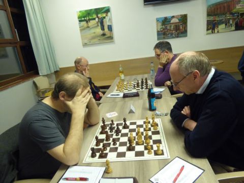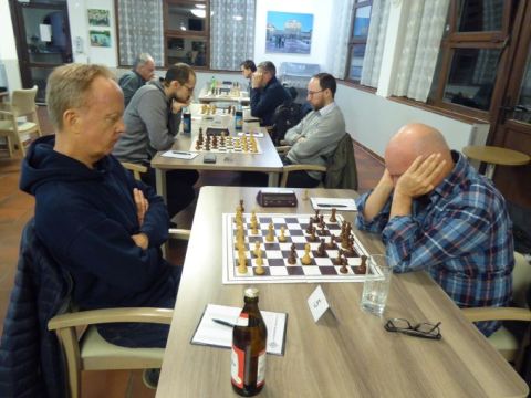 Jetzt hätten beide Haarer Protagonisten Sven und Gebhard an den verbliebenen Weißbrettern 5 und 7 gewinnen müssen, um einen Mannschaftspunkt zu entführen. Sven hatte einen kleinen, aber schwierig zu verwertenden Materialvorteil (2 Springer gegen Turm), während Gebhards Angriffsinitiative am Königsflügel eher verzweifelt Ausgleich für einen Minusspringer suchte. Zu guter Letzt einigten sich die Spieler beider Bretter auf Remis. Also 5:3 für Neuperlach, das unter den gegebenen Umständen wahrscheinlichste Ergebnis war eingetreten.