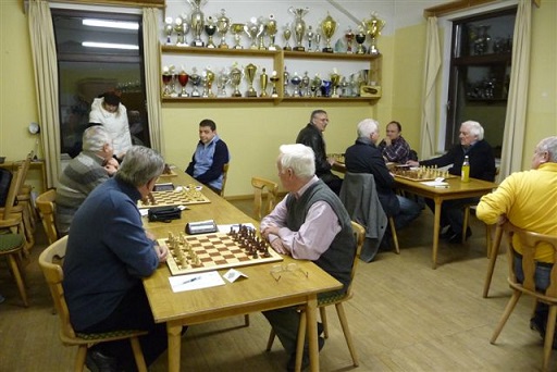 An Brett 1 holte Elmar (Weiß) bald einen ersten beruhigenden halben Punkt. Josef an Brett 5 (Weiß) tat es ihm gleich. Sein jugendlicher Kontrahent ließ alle Angriffsversuche abprallen.