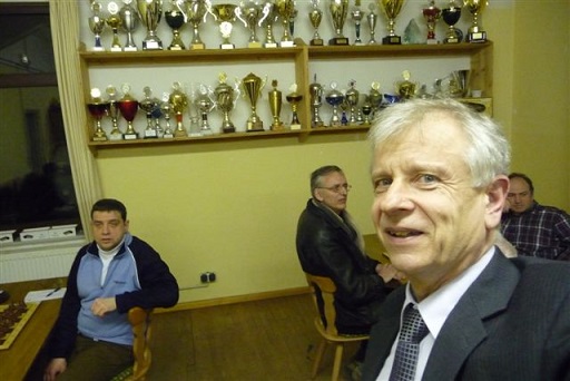 Getreu einer alten Scherzfrage ("Was sagst du als Außenstehender zur Frage der Intelligenz?") fühle ich mich heute nur indirekt angesprochen, über ein erfolgreiches Auswärtsspiel der zweiten Mannschaft zu berichten. In der 3. Runde der MMM 2013 traten wir im geräumigen Spielsaal des SK München Südost 2 (nahe S-Bahn Wächterhof) zum Verfolgerduell der Klasse A2 an, beeindruckt von mehreren Regalmetern Siegerpokalen, die sich zum Glück als Trophäen der Tanzabteilung erwiesen.