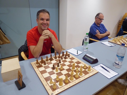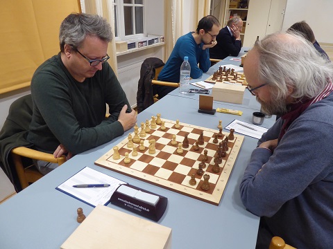 Michael eroberte in der Eröffnung an Brett 6 (Weiß) auf magische Weise drei Bauern, gab aber zwei davon zurück, um seine Entwicklung mit heiler Haut abzuschließen. Im Bauernendspiel bedeutete der letzte Mehrbauer entscheidendes Übergewicht. 3,5:0,5, ein beruhigender Vorsprung.