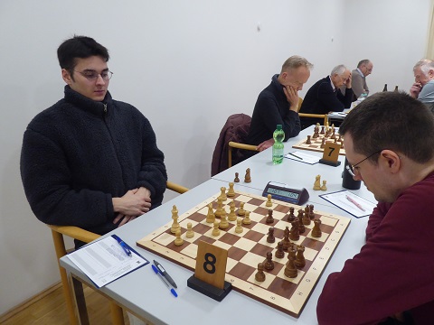 Eine Viertelstunde später anerkannte Peer an Brett 6 (Weiß) die Verteidigungskunst seines Gegners und willigte ins Remis ein. 1,5:0,5, die Welt schien in Ordnung, da ja Brett 7 am Gewinnen war.