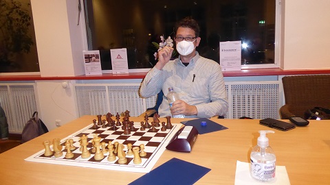 Hans-Christoph (Brett 2, Schwarz) war unser erster Brettsieger, ihm gleich taten es Stephan H. am Spitzenbrett (Weiß), Sebastian (Brett 3, Weiß), Ulrich (Brett 5, Weiß), Manfred (Brett 7, Weiß) und Konrad (Brett 4, Schwarz). Cherin (Brett 6, Schwarz) und Stephan VZ (Brett 8, Schwarz) dankten den fleißigen Punktesammlern für die erfolgreiche Überkompensation. Nächstes Mal sind sie an der Reihe.