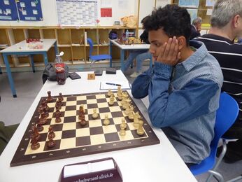 Julian machte leider in der Eröffnung mit den weißen Steinen einen groben Bock, der mit Bauernverlust und strategisch verlorener Stellung bestraft wurde. Yatin gewann durch einen taktischen Trick recht früh in der Eröffnungsphase eine Figur gegen zwei Bauern, mit einer technisch klar gewonnenen Stellung. Im weiteren Verlauf machte er es sich jedoch zunehmend das Leben schwer, vermisste mit einer Mattdrohung den gegnerischen König einzusperren und musste dann erfahren, dass der aktive König im Endspiel eine sehr starke Figur ist und durfte letztendlich mit einem Remis zufrieden sein. Mit einer sehr reifen Leistung bestrafte Ensar das passive Spiel seines Gegners. Mit taktischen Finessen verbesserte er kontinuierlich seine Stellung und nach zwei weiteren Fehlzügen des Gegners war die Partie schnell vorbei. Das schaut gut aus für die weitere Entwicklung!