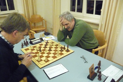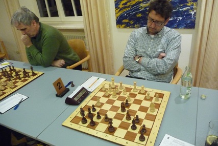 Die Mannschaftsehre retteten drei Remis von Cherin (Brett 3, Schwarz), Ulrich (Brett 7, Schwarz) und Hans-Christoph (Brett 2, Weiß).