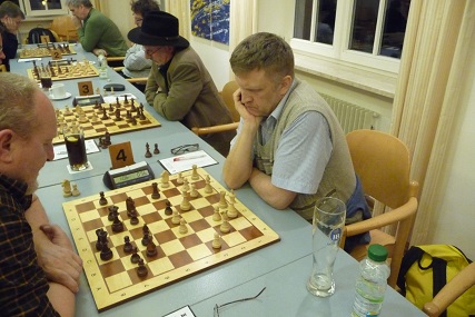 "Schwamm drüber" sagen am besten Andreas R. (Weiß, Brett 4), Konrad (Weiß, Brett 8), Manfred (Schwarz, Brett 5), Peter I. (Weiß, Brett 6) und Peter S. (Schwarz), der am Spitzenbrett relativ lange durchhielt und dadurch den Hinterleuten eigentlich den Rücken freihielt. Aber der Wurm war schon im Apfel ...