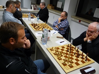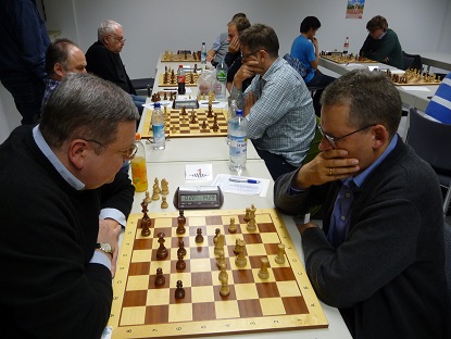 Die war auch nötig, denn Konrad (Brett 6, Schwarz) verschlief die Befreiung seines slawischen Läufers c8 und musste dann hilflos zusehen, wie ein weißer Turm auf h7 einschlug. 1,5:1,5.