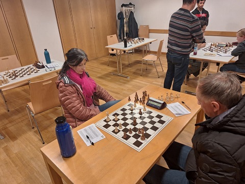 Für die 4. Mannschaft des SC Haar ging es am Fr, den 8.12.23 in der 2. Runde zu den unmittelbaren Nachbarn gegen SC Vaterstetten-Grasbrunn 1. Die Aufstellung für den Kampf stand dabei bereits eine knappe Woche vorher fest, die Spieler konnten sich entsprechend gut auf ihre Farben vorbereiten – bis dann schließlich Bahnstreik und Krankheitswelle Donnerstag abends die 4. und 5. Mannschaft erreichte und die Aufstellungen nochmals durchwürfelte.