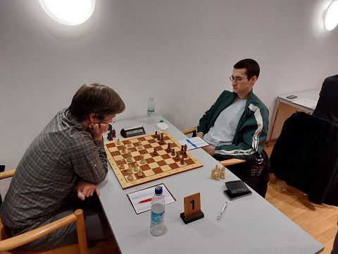 Luis an Brett 1 musste sich einem Gegner stellen, an dem selbst die nebenan spielende 2. Mannschaft stark zu knabbern gehabt hätte. Obwohl er sich tapfer verteidigte, gelang er immer weiter ins Hintertreffen, bis er eine Leichtfigur verlor und damit auch die Partie. 1,5:1,5