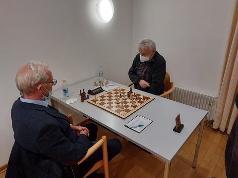 Mit Hanns-Dietrich an Brett 3 nahm dann leider das Schicksal seinen Lauf. Nachdem er sich auf ein mutiges Tauschgeschäft eingelassen hatte, musste er sich im Endspiel gegen zwei verbundene Freibauern verteidigen und machte in dieser schwierigen Lage den entscheidenden Fehler. 2,5:2,5