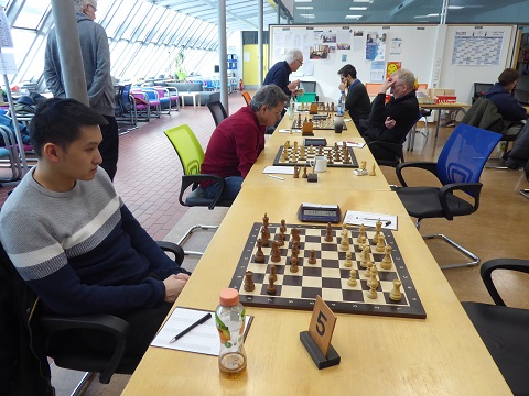 Es ging gleich gut los: Viktor fand an Brett 3 trotz der schwarzen Steine aktives Gegenspiel in offenen Linien, die einen Minusbauern deutlich kompensierten. Ein Remisangebot seines Gegners (IM) war der verdiente Lohn. 0,5:0,5.