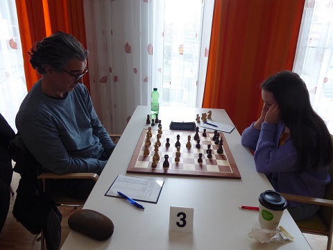- Brett 3: Viktor (Weiß) saß einer erfolgreichen taktischen Großrechnerin gegenüber.