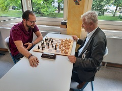 Ordentlich Schwitzen war angesagt beim Saisonfinale: Bei Temperaturen von knapp 30 Grad (gefühlt deutlich mehr!) fanden sich dennoch 17 unentwegte Kämpen zur Schnellschachmeisterschaft 2022 ein - ebenso viele wie bei der Blitzmeisterschaft vergangene Woche, wobei der DWZ-Schnitt diesmal deutlich höher war.