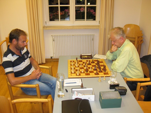 Stephan ging die Finalpartie sehr engagiert an und versuchte seine Initiative im Mittelspiel mit einem Figurenopfer für Bauer und Angriff am Königsflügel auszubauen ... allerdings gab es ein paar Züge später die Gelegenheit zu einem günstigen Rückopfer, die Konrad auch exakt wahrnahm und seinerseits eine starke Initiative erhielt. Gegen Konrads Angriff auf beiden Flügeln gab es rasch keine Verteidigung mehr und Stephan musste die Waffen strecken. Gratulation an Konrad für ein großartiges Turnier und seinen ersten Haarer Titel - als nette Zugabe bedeutet dies das erstmalige Überspringen der DWZ-Grenze von 1900!