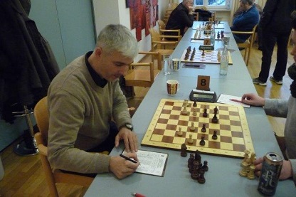 Bernhard an Brett 8 (Weiß) erzielte das gleiche Ergebnis aus einer Druckposition. Seine Initiative gipfelte in einem Läuferopfer auf f7. Dessen Nachwehen gebaren einen gesunden Mehrbauern, der bis zum Schluss erhalten blieb, sogar als gedeckter Freibauer in einem Bauernendspiel. Erstaunlicherweise war aber genau dieses so blockiert, dass der weiße König kein Durchkommen fand. Überraschendes Festungsremis zum Zwischenstand von 5:1.