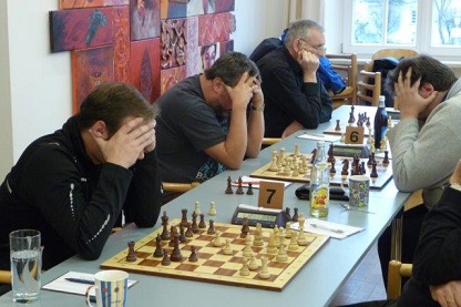 Am zupackendsten zeigte sich Stephan an Brett 7 (Schwarz): Aus wie immer hervorragend präparierter Eröffnung eroberte er bis zum Mittagsläuten die weißen Zentralbauern, ohne dem Gegner Kompensation zu hinterlassen.