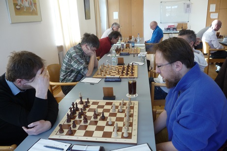 Für die Schönheit des Endspiels focht Winfried an Brett 4 (Weiß) die längste Partie des Tages. Es war keineswegs offensichtlich, wie Schwarz seinen Turm gegen den weißen Läufer gewinnbringend in Szene setzen würde. Erst als der schwarze König dem weißen Monarchen auf den Hermelin rückte, hatten sich alle sattgesehen. 2:6.
