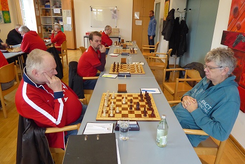 Zwei schnelle Weißremis hakten Elmar und Walter J. ab. Zwischenstand 1:1, und unser Weißpulver war zur Hälfte verschossen.