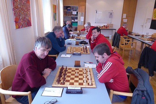 Nachdem das Match nun entschieden war, einigten sich Hagen und sein Gegner an Brett 3 schnell auf Remis durch Zugwiederholung in ihrem festgefahrenen Schwerfigurenendspiel. Neuer Stand 2:5.