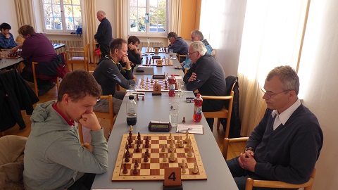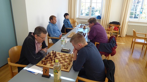 Fairerweise muss man dazusagen, dass wir an Brett 8 einen Vorsprung geschenkt erhielten, da die Gäste mit sieben Mann angereist waren. Gut, dass wir eine vollständige Achtermannschaft aufbieten konnten, dank Last-Minute-Einsprung von Sebastian. 1:0.