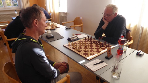 Bei diesem Stand einigten sich die Kontrahenten an Brett 4 schlussendlich auf das in der Luft liegende Remis. Walter (Weiß) hatte am Ende mehr vom Spiel, war aber auch mit dem halben Punkt mannschaftsdienlich einverstanden. 5,5:2,5, und der gutgelaunten Manöverkritik in der Truderinger Waldwirtschaft (würdige Alternative zur schlummernden 'Post') stand nichts mehr im Weg.