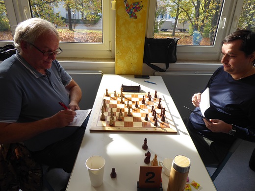 Christoph hatte mindestens die dritte Saison nacheinander denselben Spieler der Sendlinger zum Gegner. Das Streben nach inhaltlicher Variation kostete viele frühe Damenzüge ohne durchschlagende Wirkung. Also waren auch hier die Kontrahenten schnell mit Remis zufrieden. Zwischenstand 2:1 um 11:30 Uhr.