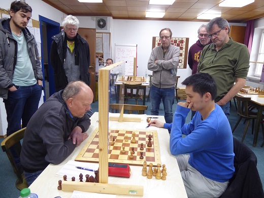 Walter hielt an Brett 6 (Schwarz) die weißen Figuren lange Zeit auf Distanz und hatte einen freien a-Bauern im Köcher. Aber in der Zeitnot bekamen plötzlich beide Seiten Dauerschachoptionen, die Walter zum sicheren Ausstieg nutzte. 4,5:2,5, der Mannschaftssieg steckte in der Tasche.