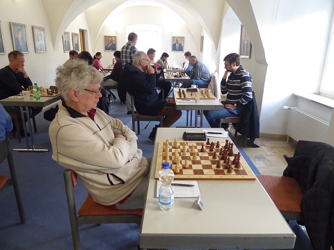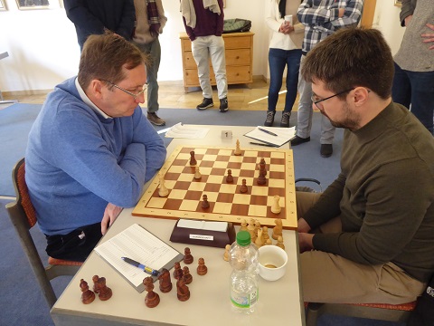 Elmar spielte an Brett 6 (Schwarz) seine ganze Routine aus, um seine gefährdet aussehende lange Rochade in eine Schwerfigurenbatterie umzumodeln. Dadurch konnte er einen durch weißes Opfer erlangten Mehrbauern schlussendlich in Form eines spielentscheidenden Freibauern behalten. 4:2, die Gäste witterten Morgenluft, denn an den zwei verbliebenen Brettern sah es jeweils nach Remis aus.