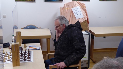 Elmar durchbrach an Brett 2 seine schwarze Serie und klammerte in kritischer Stellung ein Remis ab. 0,5:0,5.