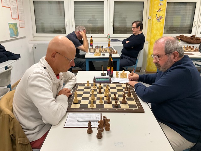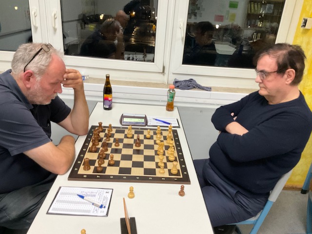 Andreas K. war an Brett 2 (Weiß) nominaler Favorit, traf aber auf einen fehlerfreien Gegner, der ihm ein Remis abtrotzte. 0,5:0,5.