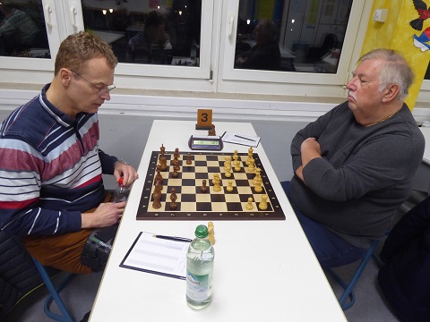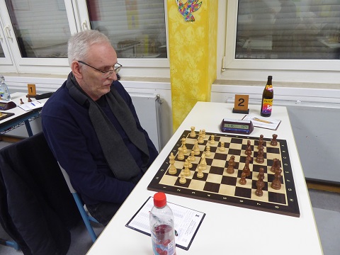 Relativ schnell zog Walter an Brett 3 die Remisbremse, fühlte sich in seiner schwarzen Stellung unwohl, obwohl sie seinem Beuteschema zu entsprechen schien. 0,5:0,5.