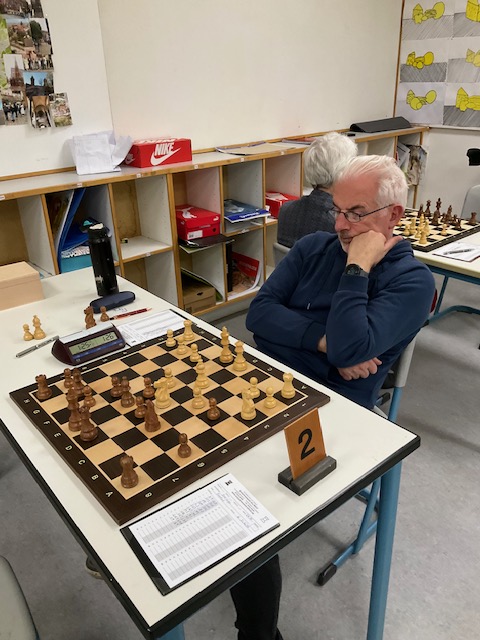 Cherin rettete an Brett 2 (Weiß) die Ehre der Mannschaft, erzwang nämlich Remis durch Dauerschach seiner Dame. Zufrieden wirkte er dennoch nicht, hatte nämlich den greifbaren Sieg gegen die damenlosen schwarzen Figuren verpasst. Also Endstand 0,5:3,5.