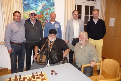 Duplizität der Ereignisse: Haar 3 gewinnt zu Hause 6,5 : 1,5 gegen Tarrasch 4 und steigt in die A-Klasse auf, Haar 4 siegt auswärts 6,5 : 1,5 bei Tarrasch 6 and steigt in die B-Klasse auf!