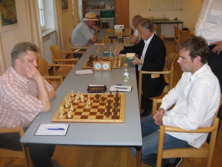 Die beiden ersten Runden brachten keine Überraschungen; der stärkere Spieler setzte sich jeweils durch, sieht man davon ab, dass Patrick Roth nach einem Remis gegen Albert von Spreckelsen auf den Stichkampf verzichtete, da er gleichzeitig im Münchner Dähnepokal engagiert war (und dort bis ins Halbfinale vordrang - starke Leistung, Patrick!).